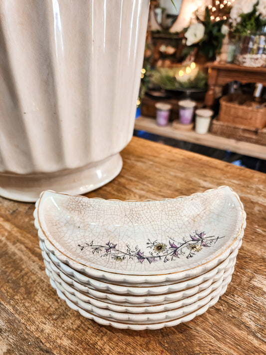 Set of Six Floral Bone Dishes