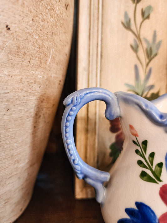 Blue Trim Floral Pitcher (Small)