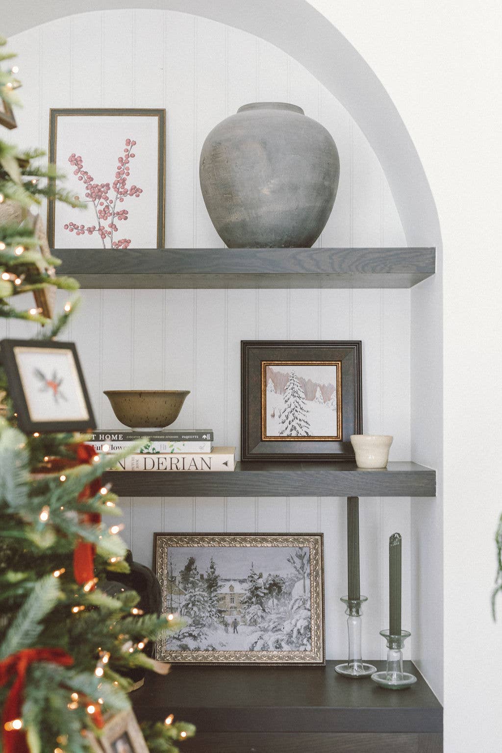 Snowy Stroll Framed Antique Art: 10x8